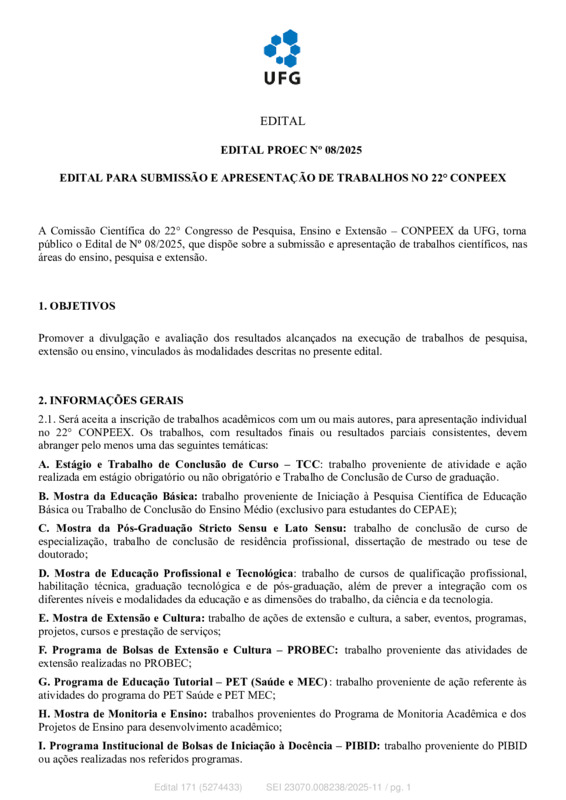 - Edital de Nº 08/2025, que dispõe sobre a submissão e apresentação de trabalhos científicos, nas áreas do ensino, pesquisa e extensão.